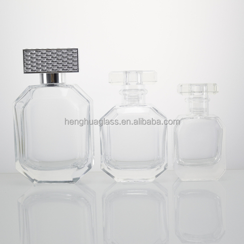 Premium Clear Octagon Perfume Bottle 30ml 50ml 100ml Empty Glass Refillable Pump Sprayer